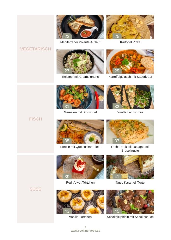 - 20 abwechslungsreiche Rezepte aus den Bereichen Fleisch, Fisch, Geflügel, vegetarisch und süß