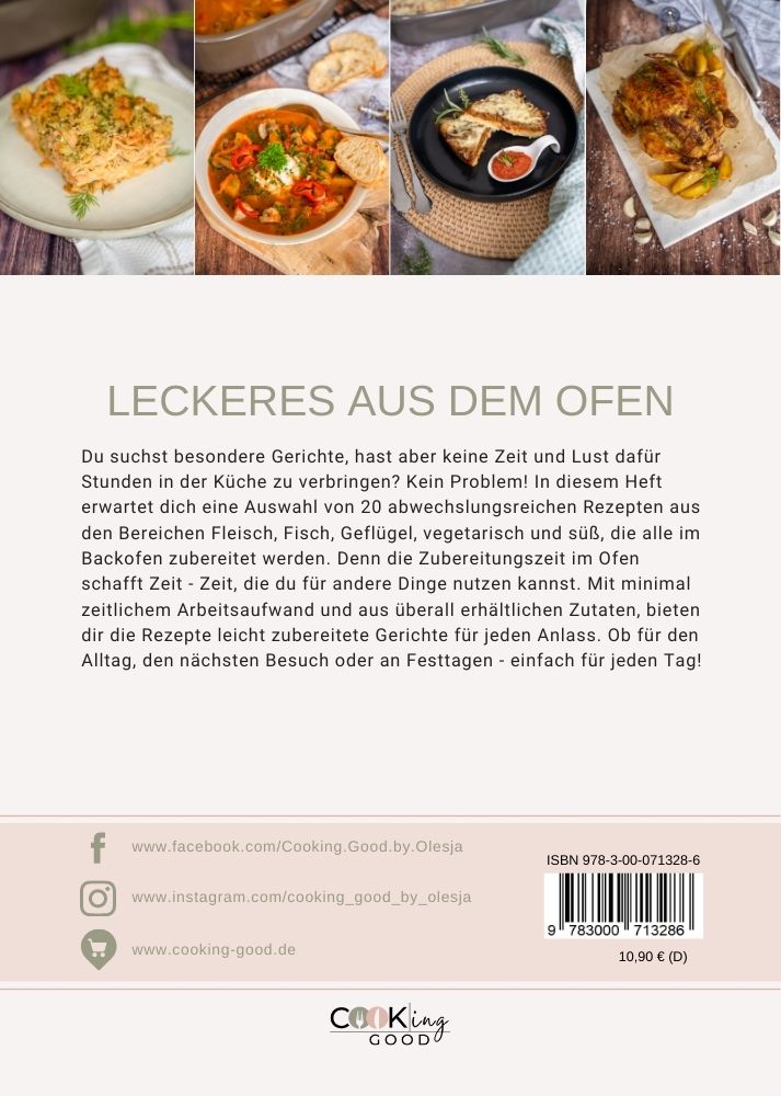 Du suchst besondere Gerichte, hast aber keine Zeit und Lust dafür Stunden in der Küche zu verbringen? Kein Problem! In diesem Heft erwartet dich eine Auswahl von 20 abwechslungsreichen Rezepten aus den Bereichen Fleisch, Fisch, Geflügel, vegetarisch und süß, die alle im Backofen zubereitet werden. Denn die Zubereitungszeit im Ofen schafft Zeit – Zeit, die du für andere Dinge nutzen kannst. Mit minimal zeitlichem Arbeitsaufwand und aus überall erhältlichen Zutaten, bieten dir die Rezepte leicht zubereitete Gerichte für jeden Anlass. Ob für den Alltag, den nächsten Besuch oder an Festtagen – einfach für jeden Tag!